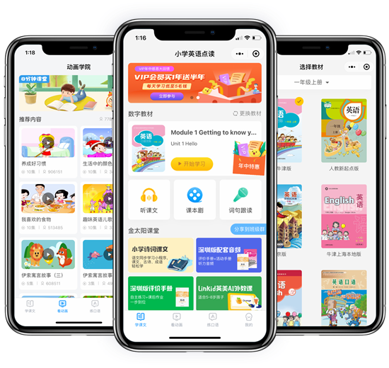 英语课程点读、英语绘本阅读,英语口语、普通话测评、听课文、课本剧、词句跟读、单词拼写、练习题库等……